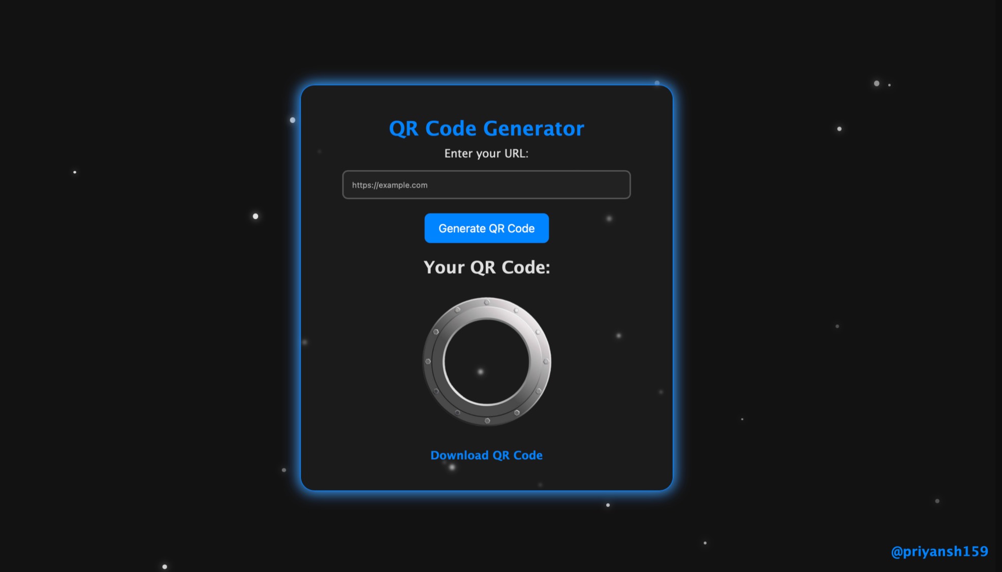 The QR Code Generator lets users input a URL, generate a QR code, and download it as an image for easy sharing.